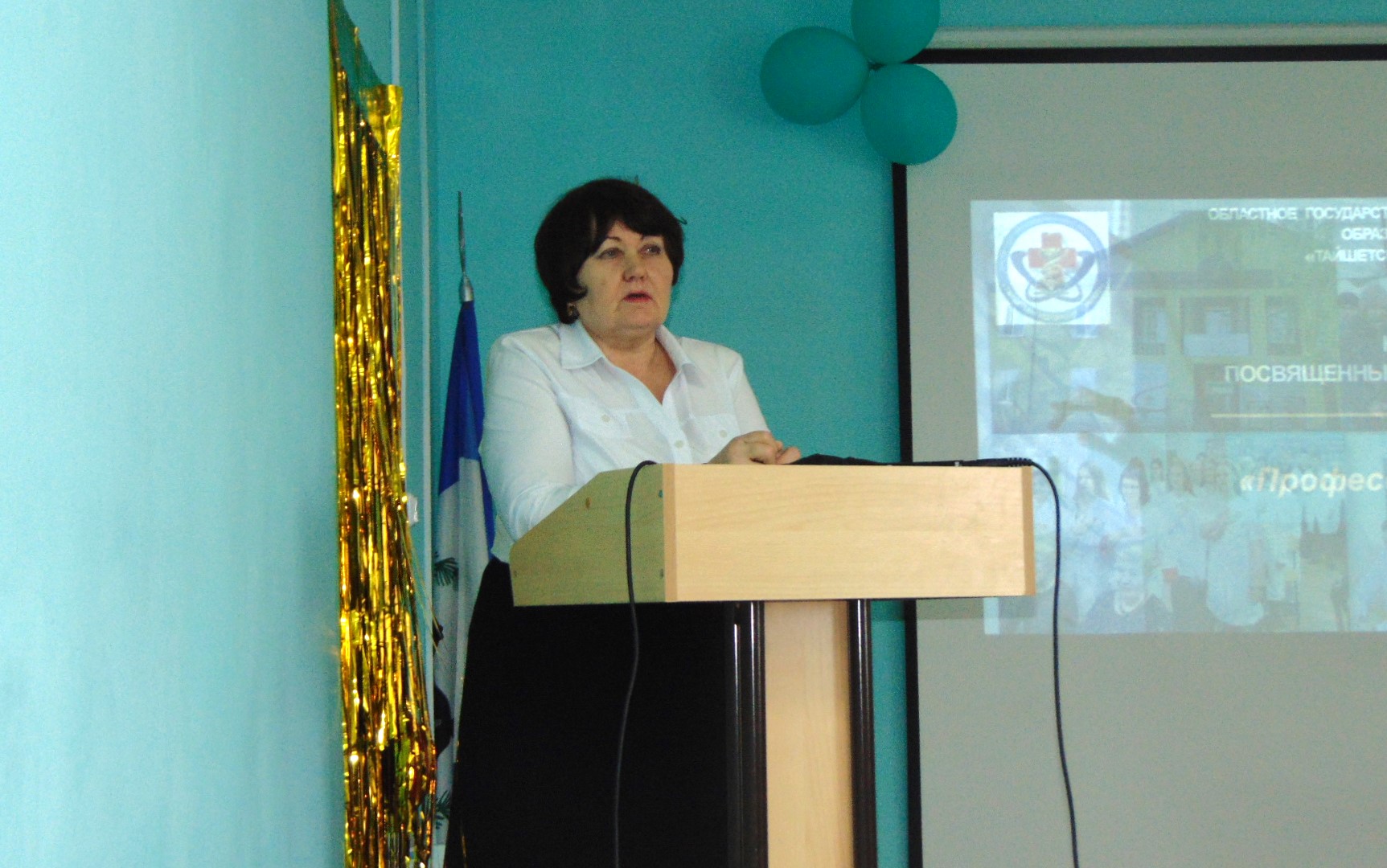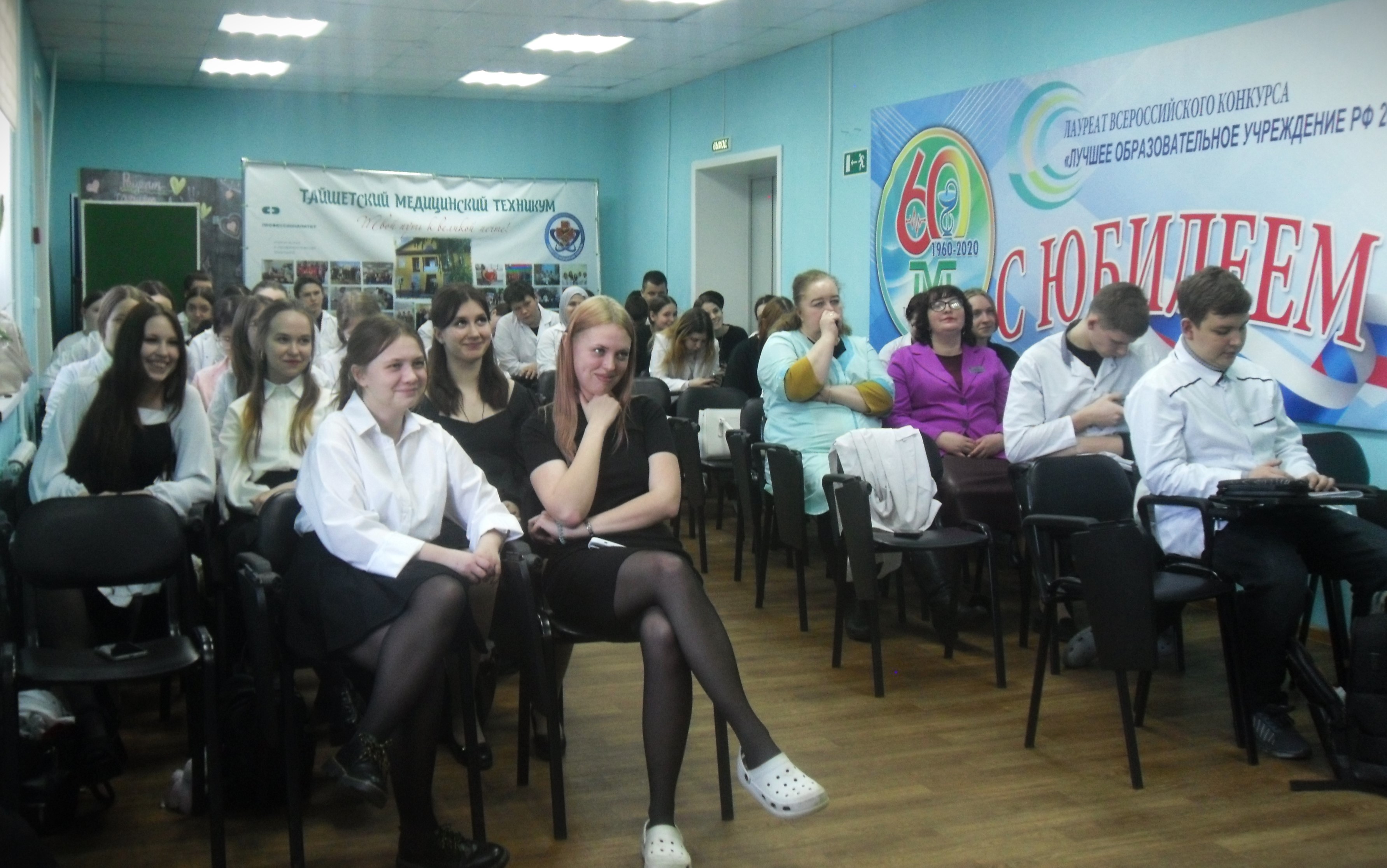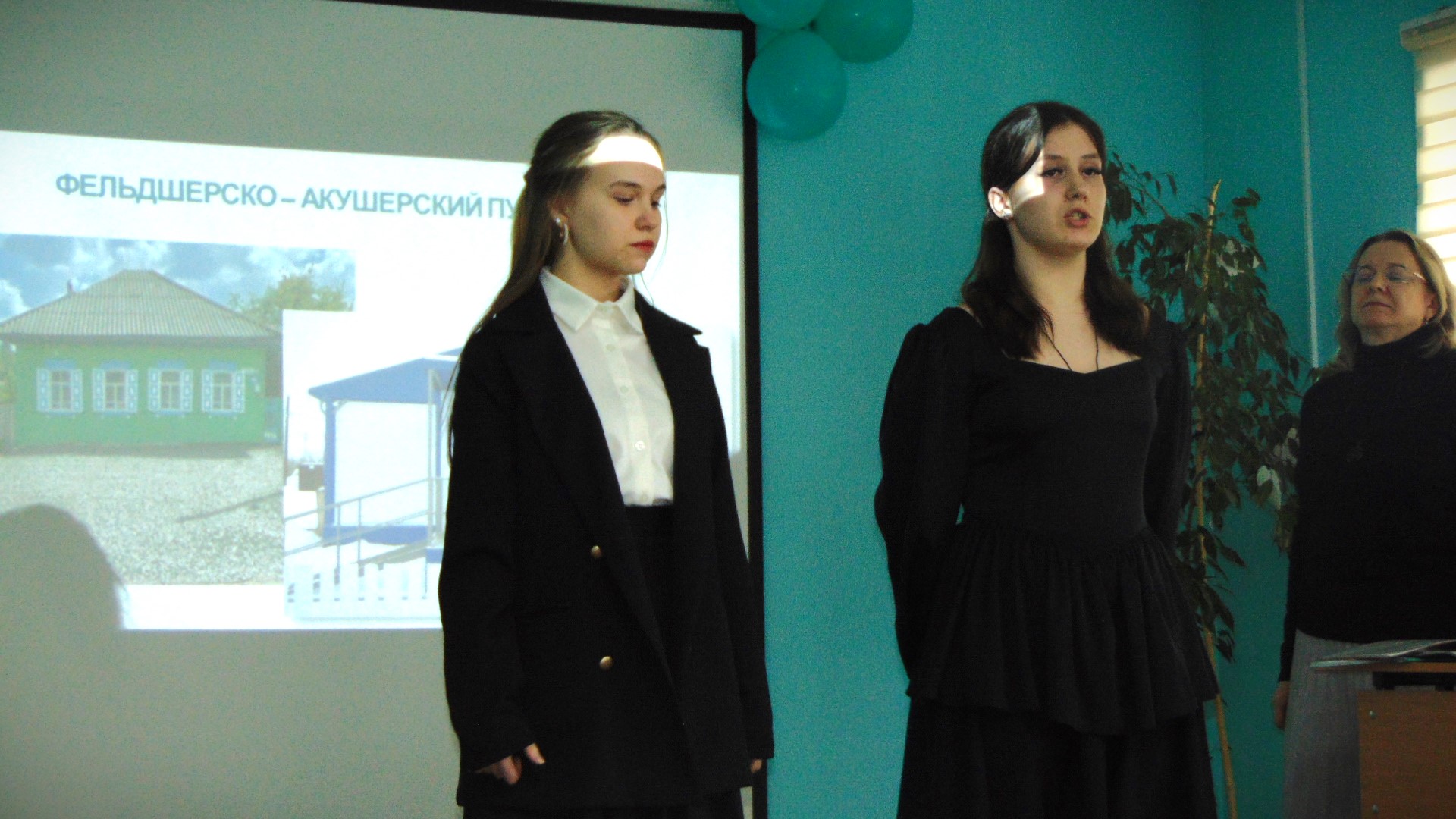 Студентками группы 201 «Лечебное дело» Дарьей Минаутовой и Вероникой Щелкановой при поддержке зала был исполнен «Гимн учителей» и песня «Главная профессия – быть человеком», как напутствие, как назидание, как пожелание будущим профессионалам.